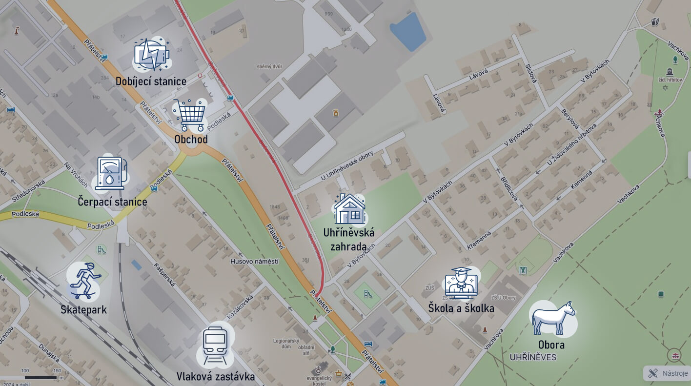Pouhých 200 metrů od projektu se nachází malebná Uhříněveská obora, která je jedním z nejkrásnějších míst pro relaxaci a procházky v přírodě. Obora je chráněným územím a nabízí jedinečný prostor pro odpočinek v zeleni. Můžete se procházet po pečlivě udržovaných cestách, obdivovat zdejší lesy a rybníky, nebo si jen užívat ticho a klid, které tato přírodní rezervace nabízí.