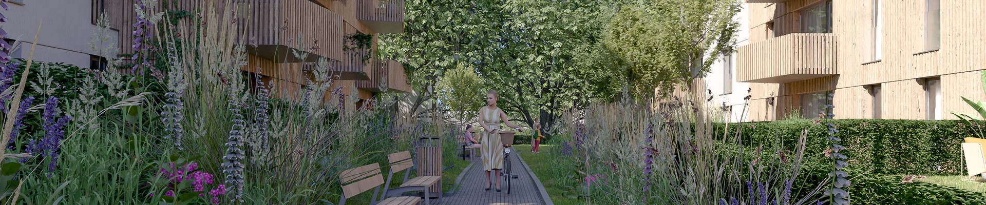 Hlavní myšlenkou celého projektu je propojení s přírodou – vytvoření oázy zeleně ve městě. Projekt pracuje v maximální možné míře s přírodními materiály, využívá sluneční energii a minimalizuje množství zpevněných ploch. Střechy a terasy jednotlivých objektů jsou navrženy jako vegetační.